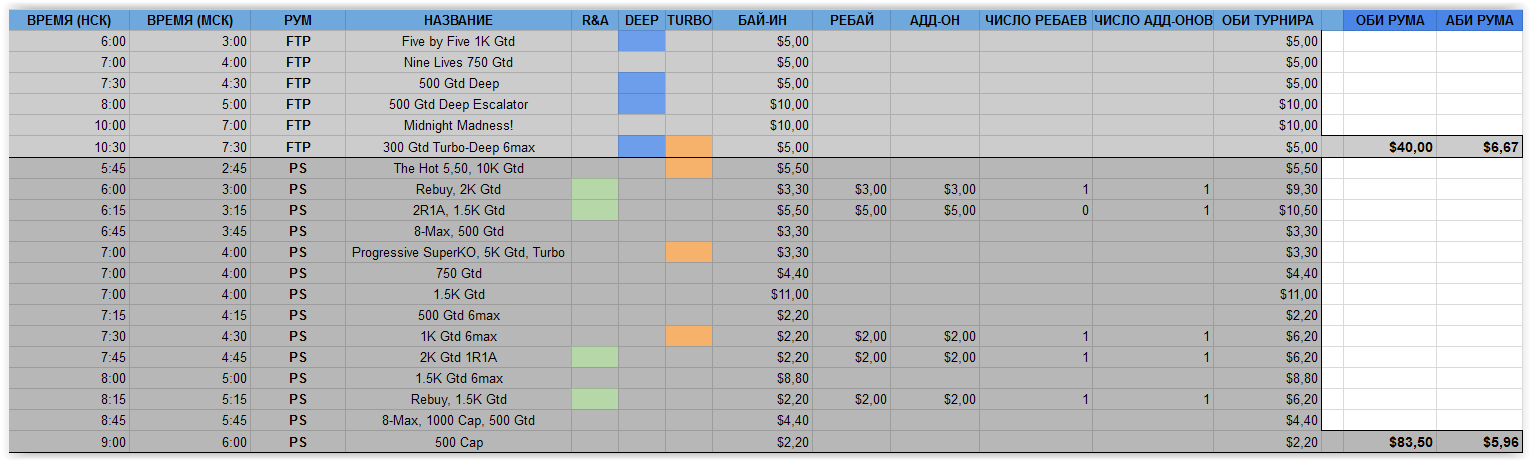 Так что предлагаю к продаже 70% от загрузки на 100 дешевых утренних МТТ на PS и FTP. Сетка турниров регулярная и мне хорошо знакома: