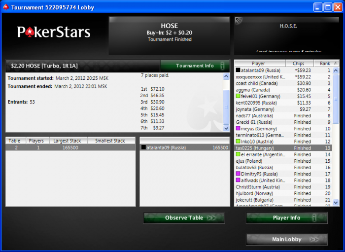 Poker Stars $4.00+$0.40 Pot Limit Omaha Hi Tournament - t30/t60 Blinds - 7 players -