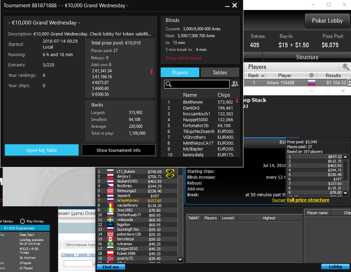 Составы игрТут всё очень очень плохо. За столом если и были любители, то играли они тайтово. Понятно, что и в таком поле есть преимущество, но я слышал от многих регов о их РОИ на серии в 100%-500%, у меня это вызывает улыбочку. В мэйне, может быть, около 100%, в остальных турнирах, близких к турбо, думаю 50% - это предел.