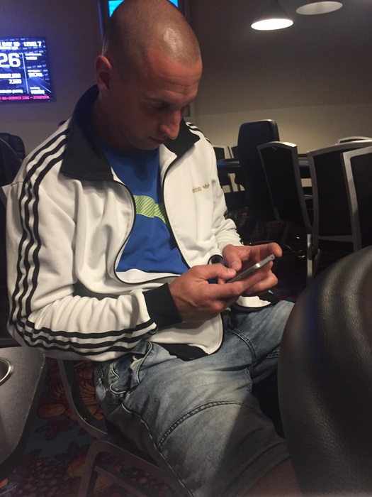 -Я опен 4,500 с КО на ,бб кол...Флоп бб чек-кол моего с-бета 3,000...Терн чек-чек...Ривер бб донк 10,000,я пас... Буду разбавлять репортаж фотками оппов Этот бб в прошлых сериях играл в футболке команды ЧиккитаМассаж и творил полную дичь за столами,похоже,спонсорство закончилось...