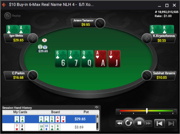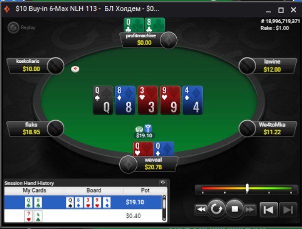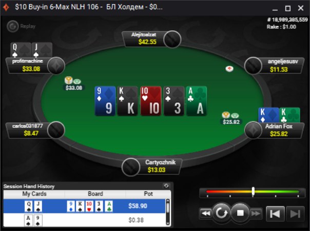 4. Изолейт неизвестного, оказался фиш, начали крутиться на флопе, в итоге выставились.