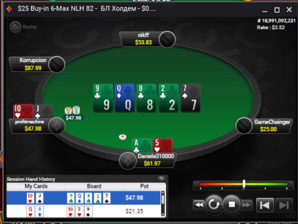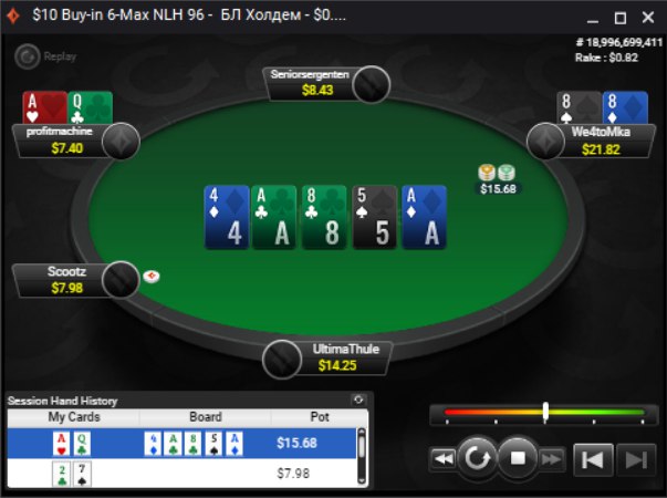 2. Топ рег лимита засквизил, я же заколил AQo, в итоге после его пот бета - 45бб флоп я ему просто пушнул.