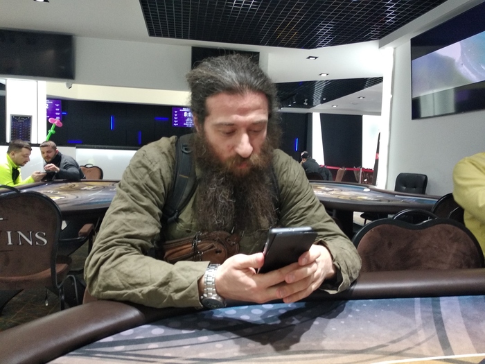 Первый день встречи прошел максимально в ускоренном режиме )). То есть: встретились в клубе, начали общаться, а турнир возьми и начнись... Все пошли занимать места. Я оказался за столом с "самым бородатым тренером из фонда екселент". Очень классный и позитивный человек, который оказывается играл последний раз в живой покер 10 лет назад.