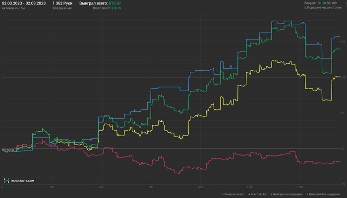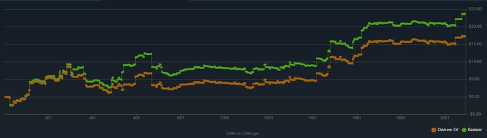 Поиграл вчера немного, на одном столе был прям лютый замес. Самое интересное мои пары практически все в сеты превращались. Итог банкрол стал :179$