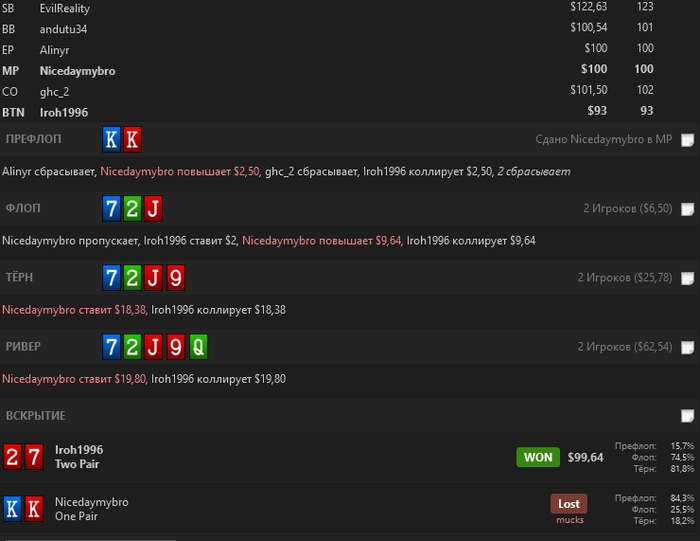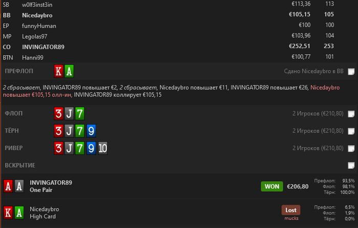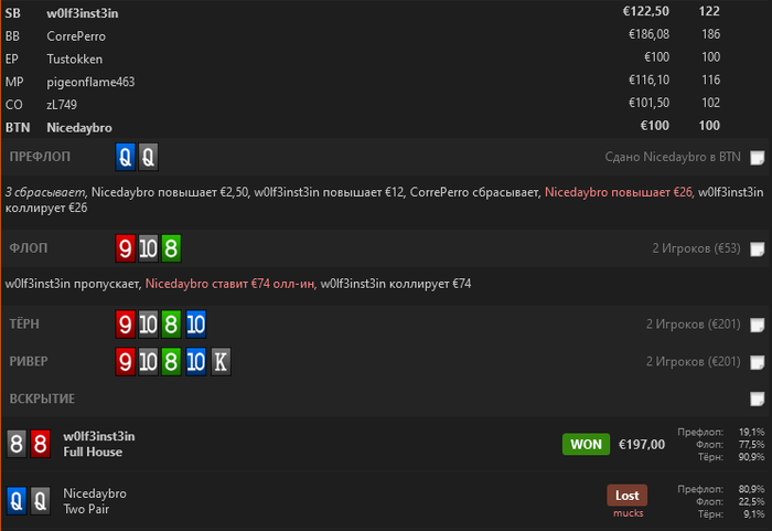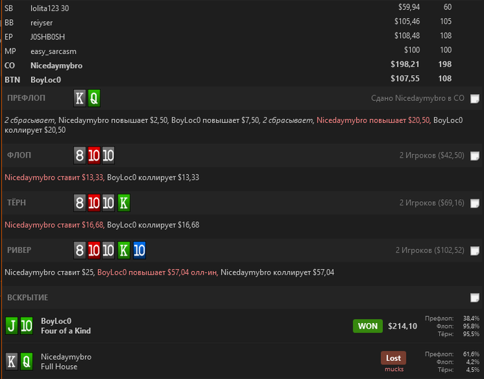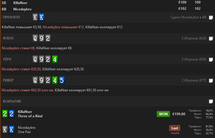 1 вип отдался с гавном, 1 KK QQ в мою и 1 такая