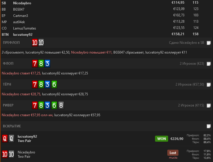 Просто вот за 2 сесии я проиграл 17 фул стеков и выиграл 3.