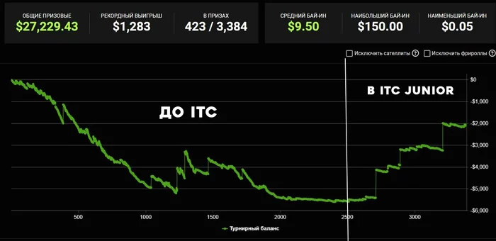 Когда решил подать заявку в школу, выбрал ITC из-за репутации одной из крупнейших и самых продвинутых школ онлайн-покера. В мае 2024 оставил заявку, отправил базу и меня приняли на ABI $1,5. Путь в Junior был непростым, но точно того стоил. Моими тренерами были Илья siinhs, Алексей ArhPro и Саша DespUA.