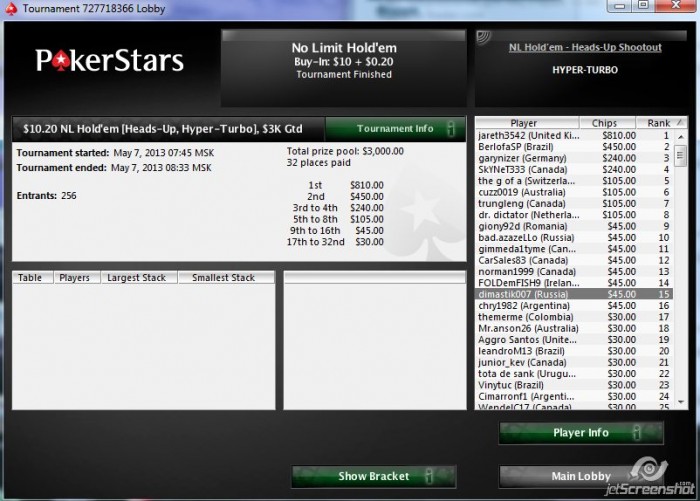 zvezda91 goes all-in 1,585, dimastik007 goes all-in 695