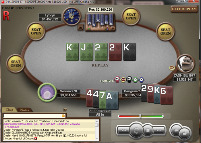 View hand 2239341DeucesCracked Poker Videos Hand History ConverterFinLaz (CO): t48208 M = 4.82