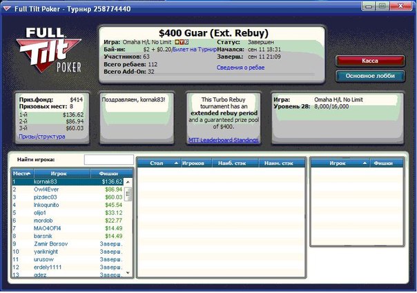 http://www.officialpokerrankings.com/pokerstars/skirunner545/poker/results/926F0C18C1454DD4BE5E7DE3811107D4.html?t=2В последнее время также увлекся омахой хай-лоу. Играю в основном турниры по данной дисциплине, не так успешно как мой сосед, но все же. Иногда играю Zoom SH ради вппшечек.