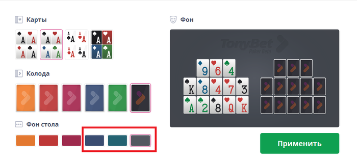 Было принято решение поставить дефолтные цвета столов, чтобы не надо было играться со всей цветовой гаммой. Более менее нейтральные - 4 и 6 цвета (помечено на скриншоте):