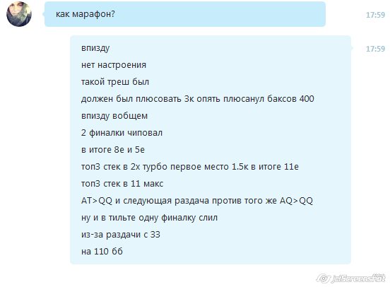 BeStupidLikeMe @ 10.11.2015 подумал, скорее всего покер не буду бросать) по выходным, если будет время, буду катать ребайники по 22 рубля и фризы по 100 рублей на покердоме.
