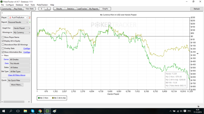 SB: 222.36 BB (VPIP: 94.44, PFR: 11.11, 3Bet Preflop: 3.85, Hands: 36)