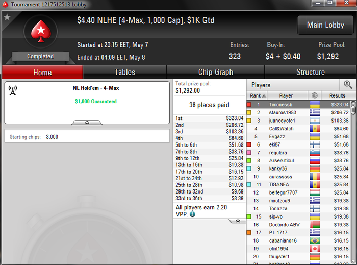Играю я на Pokerstars.(ник - timonessb)
