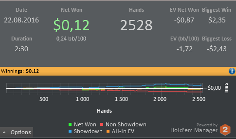 Сегодня разберу эту сессию(только раздачи с самым бальшым и маленьким Net Won) , дальше займусь теорией и возможно сыграю еще одну сессию вечером.