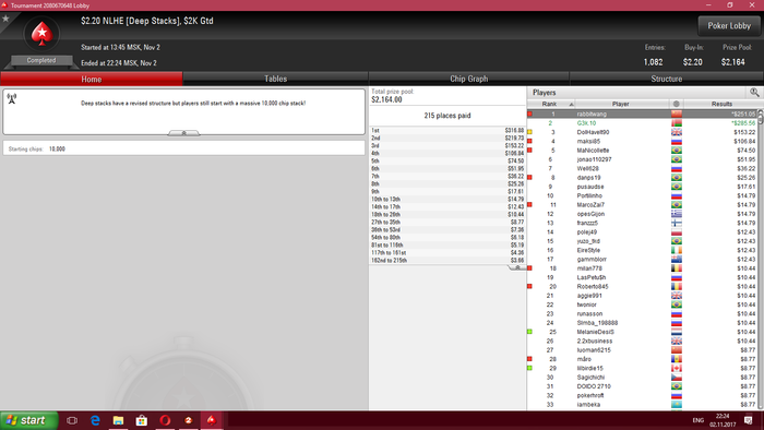 На этой недели катал мало потому что приболел, банкролл на пати я вывел , там много хороших турниров но мне там не комфортно))) С СНГшками пока как то вяло , турниры немного насыпают за всю боль что былы...