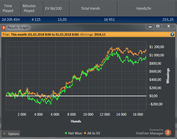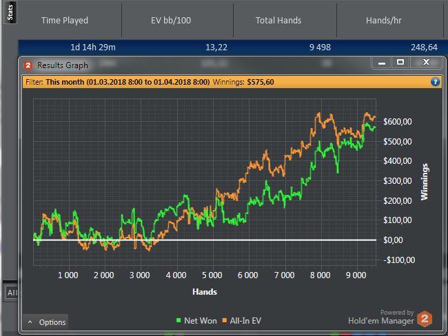 В целом, теории уделял времени раза так в 3-4 больше, а так как стола по-прежнему 4, из-за этого не сыграл практически ничего, за что весь месяц постоянно себя ел. Количество рук и часов - просто курам на смех. Вообще, это моя хроническая проблема - перфекционизм и желание сделать всё идеально, сыграть каждую раздачу безупречно, при принятии решения учесть все факторы и посмотреть 4 миллиарда стат (отсюда дикий тильт и обвинения самого себя, когда делаю какую-нибудь глупую ошибку). Многие споты, особенно мелкие, пора давно переводить в автомат-режим и за счёт этого увеличивать кол-во столов, а серьезно думать над действительно тяжелыми спотами и в больших банках.