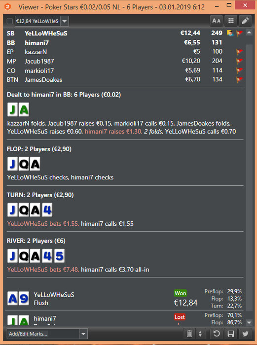 ThxMoon1, AK в АА, я боялся, что у тебя сет, но сразу поставил тебя на АК, после контбета флопа в мультипоте) и сори за колдколл 3-бета, не хотел пугать фиша