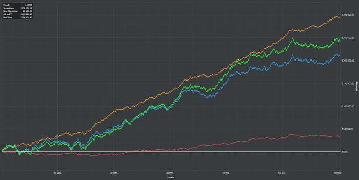 Добрый день, хочу оставить отзыв об отличном тренере!!!!! Побывав в одной из покерных школ несколько месяцев результата не добился. Взял пакет из 4-х тренировок для микролимитов, за месяц поднял ЕВ с 45 до 85, результат и сила чувствовалась уже после первого занятия. seeya объясняет все доходчиво, тренировки по полтора часа, график выбираешь сам, у меня было по одному разу в неделю. Между тренировками можно всегда задать вопросы, возникающие во время катки. Планирую перейти на лимит выше, поэтому взял еще один пакет. Также воспользовался бэкингом. Ну и мои графики ДО и ПОСЛЕ ВСем рекомендую.