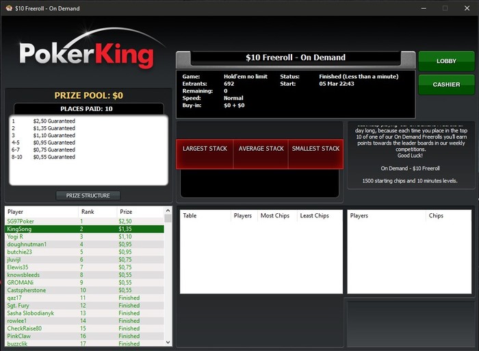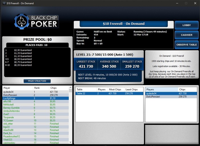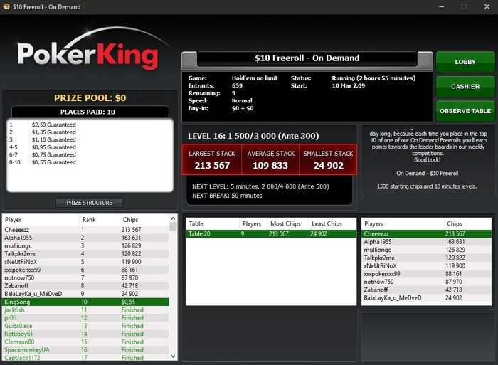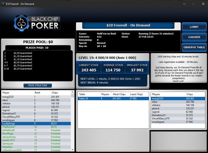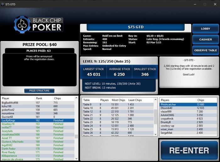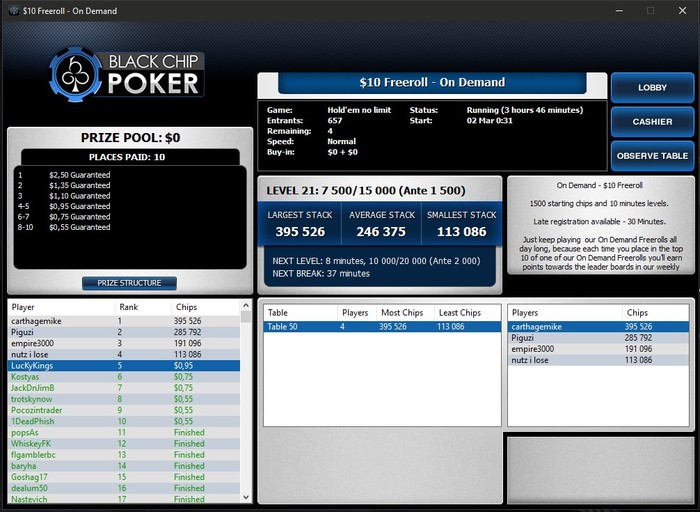 vorobey, таким образом, вылетев из фриролла (а вылететь там можно в первой же раздаче, т.к. игроки очень лузовые, а гсч выдаёт, порой, просто невероятные переезды), я имею ещё 3 "ре-энтри" и повышаю шансы на попадания в топ 10.