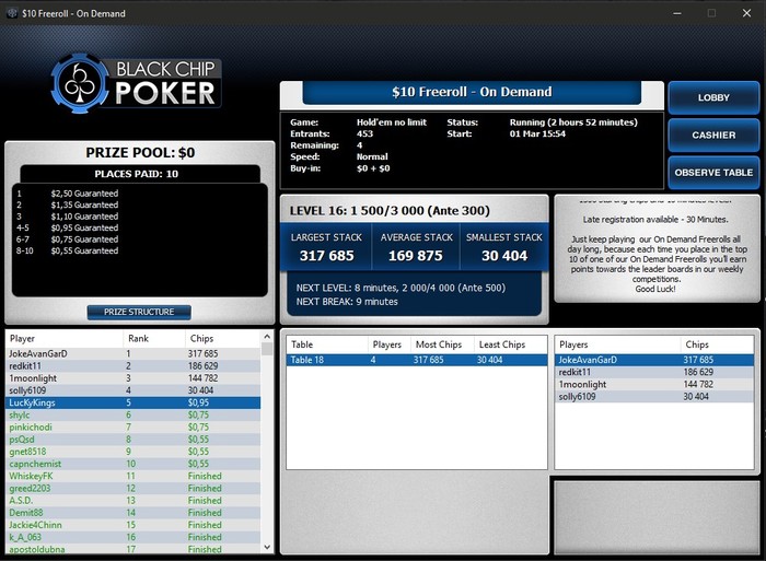 Буду играть в 4-ёх румах сети WPN: PokerKing, AmericasCardroom, BlackChipPoker и True Poker.