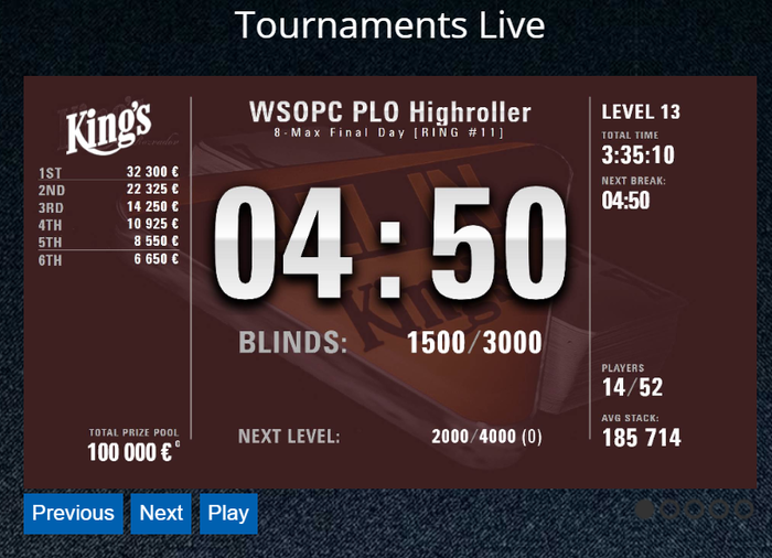 Также идёт PLO High Roller 20/43 по €2,000, причём поздняя регистрация будет открыта ещё 45 минут. С точки зрения числа участников, это один из самых лучших шансов выиграть чемпионский перстень WSOP-С.