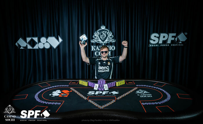Подошла к концу серия SPF в Сочи. Несколько участников и тренеров нашей команды принимали участие в серии и даже провели небольшую встречу команды. Но самым ярким событием был занос тренера MVP Андрея "Drupa-lucker" Чернокоза. Андрей занял первое место в турнире High Roller 8-max с бай-ином 1,650 у.е. За первое место он получил 42,880 у.е. призовых. Поздравляем с заносом нашего тренера! Кроме того, Андрей вышел на финалку Main Event с бай-ином 770 у.е. и закончил турнир на 5-ом месте. Отличный результат! Андрей на своём примере показывает как надо тащить турниры. Хочешь обучаться у такого тренера? Скорее подавай заявку к нам в скайп MVP-Request или в дискорд MVP Open Water