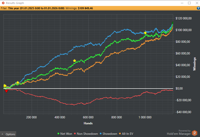 Также отыграл где-то 500к рук на Пати на фф100-200 в минус, но засчет более чем 100% рб со всеми плюшками вышло около +30к