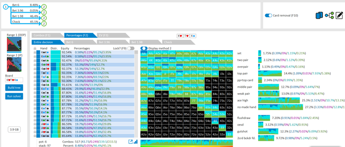vladislaviorus, это кбет со всем диапазоном или планируешь часть в чек уводить? Если первое, то не понимаю чего ты тут добиваешься? Просто сыграть по солверу или посмотреть как оппы будут на это реагировать?