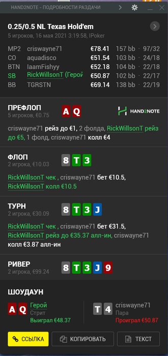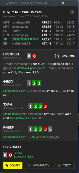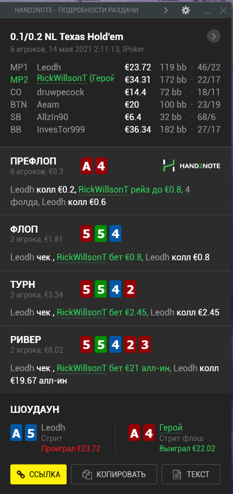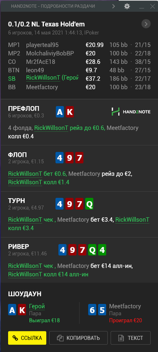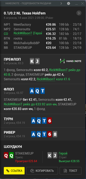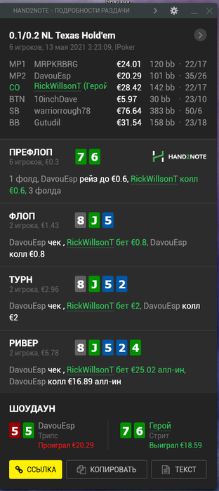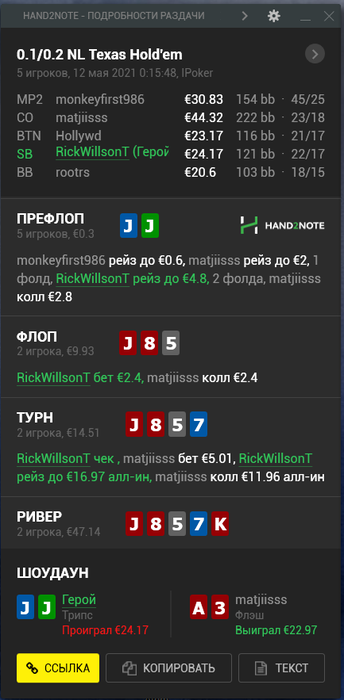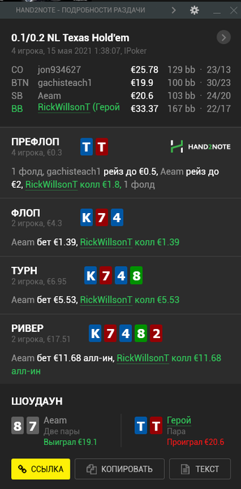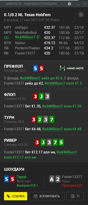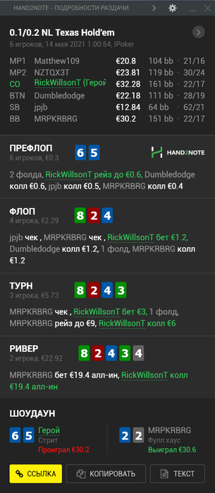 К счастью, это была самая печальная раздача, все остальное дефолт вроде.