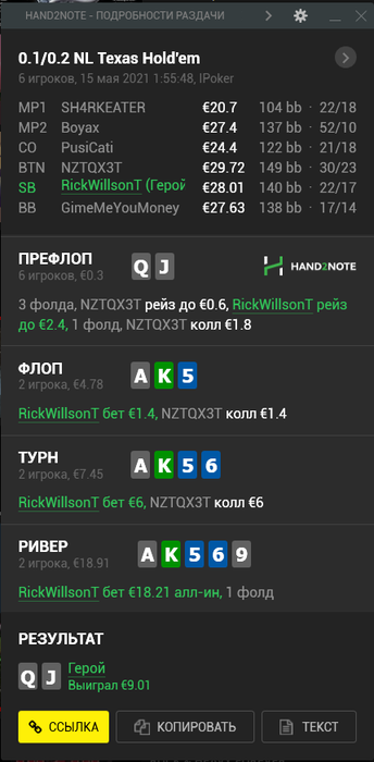 хз! сейчас после анализа думаю что все таки ближе к фолду я тут, потому что все же на нл 20 не доблефовуют часто в таких спотах, но смелых ребят все равно хватает.
