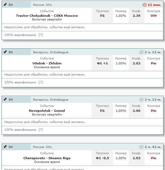 Третья причина - подторговываю прогнозами, поэтому есть штук 50, наверное, прогнозов где я сам ставил, но в подписку не давал, в случае когда кэф после моей ставки сильно валился.