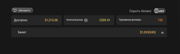 Приветики, я Spinosa cо стратегии. В апреле закинул 300$ + 10$(для привязки карты) в покерок. Результат на тудей таков: