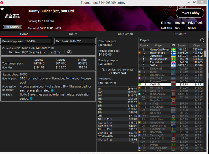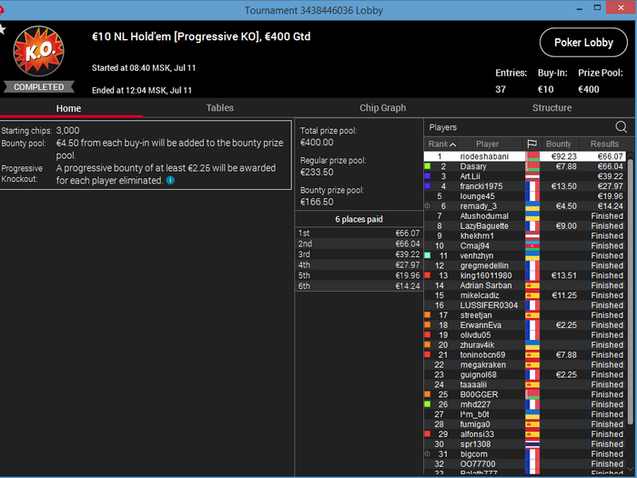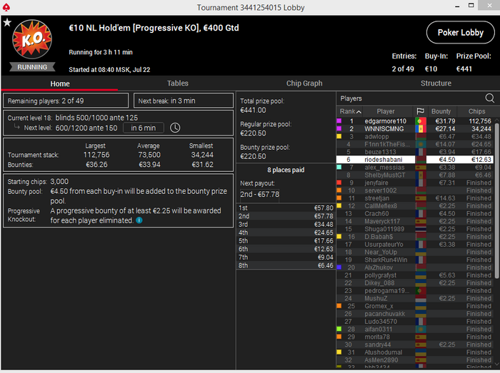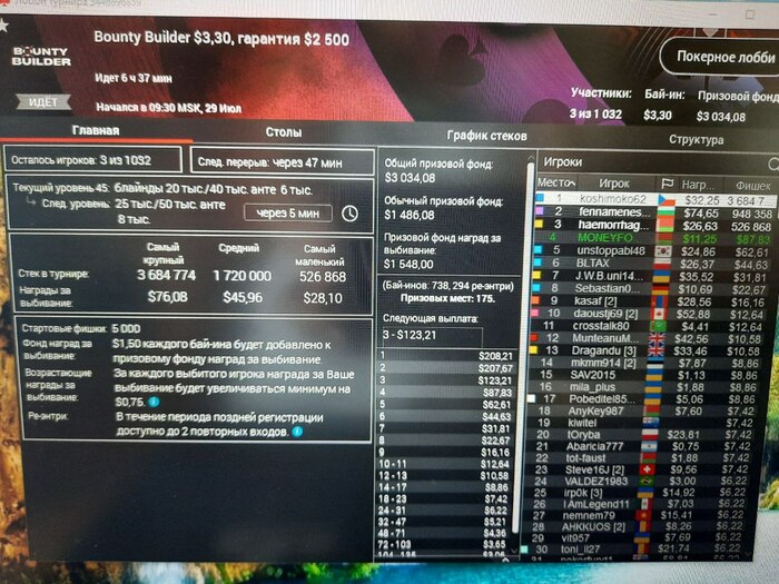 С почином 44й лимит, интересный был турнир, буду прибавлять на лимитах выше