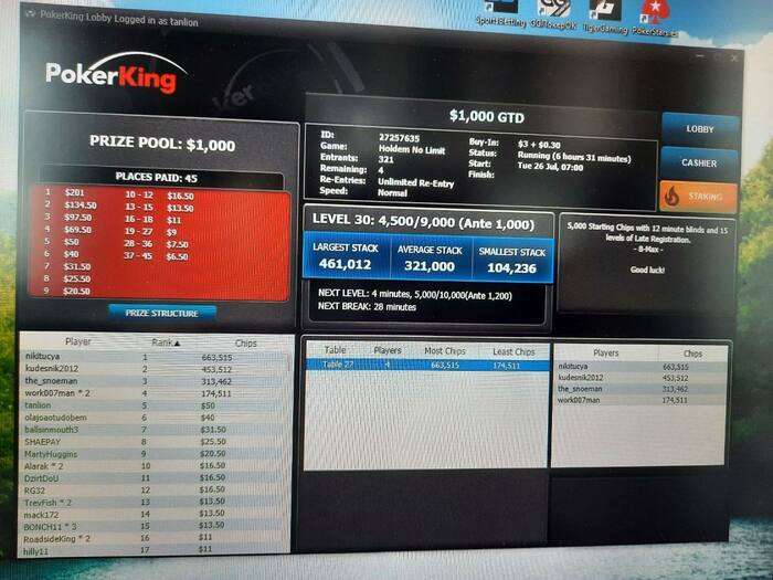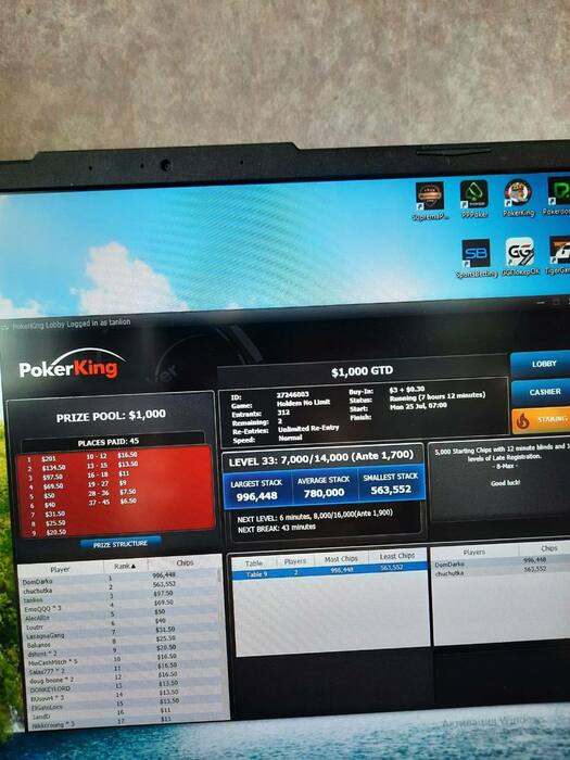 Сегодня очень плотно гриндил, удалось выйграть последний турнир, боролись 3 макс очень долго, очень оптимистично по-удваивал своего бывшего студента Ромы, который в фонде КОТ, сначала раздали кулер в его пользу, потом в конце в ХА в мою)