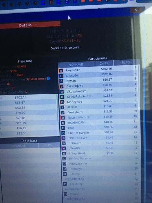 Сегодня кстати впервые за долгое время не выбился из 6 столов) Хорошие знаки сегодня получил, можно сказать все турниры сложились, свопнули еще с Васей, с топ 15, он топ 12 я топ 16 билдера( я ему предлагал с топ 16 вчера)) в итоге он мне высылает, я ему нет) Так, что старайтесь с предфиналки хотя-бы свопать)