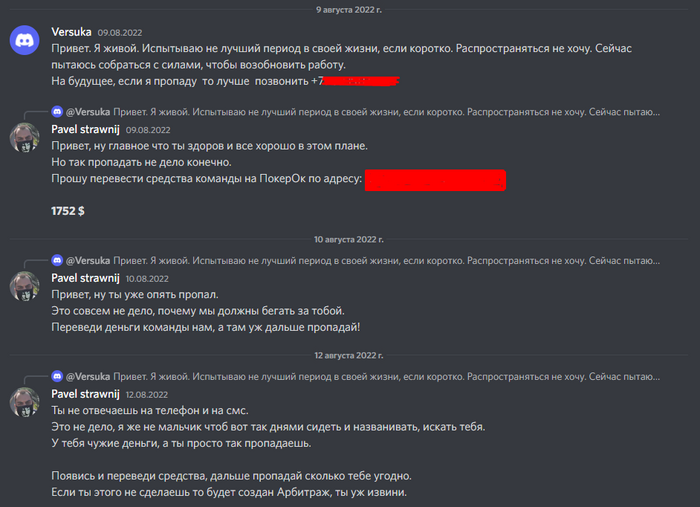 Игрок закрыл 5 плюсовых пакетов и получил расчет. Последние 3 недели не выходит на связь и на прсьбы о переводе средств команды обратно не отвечал.