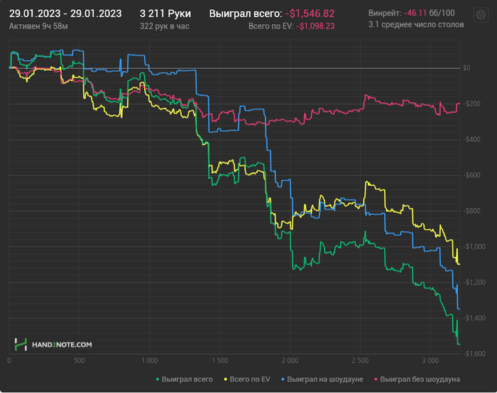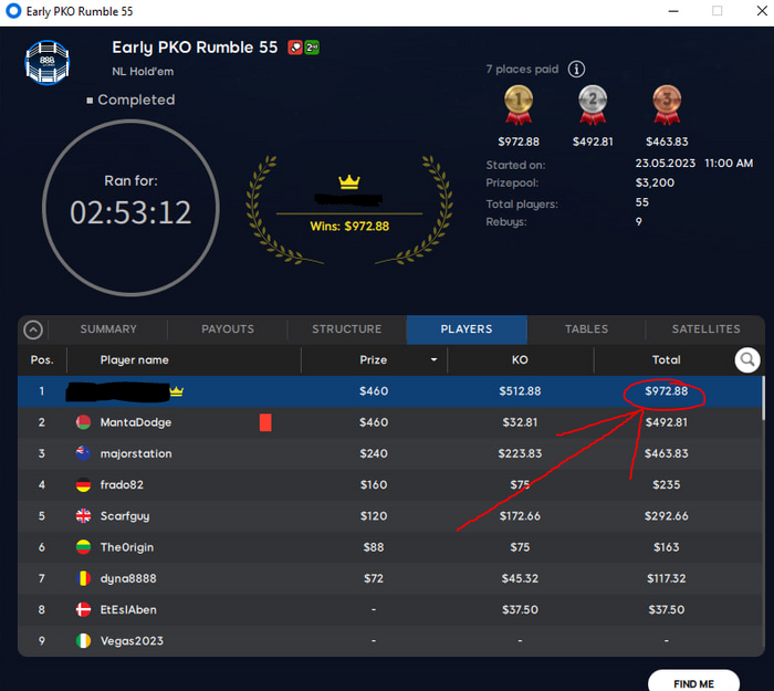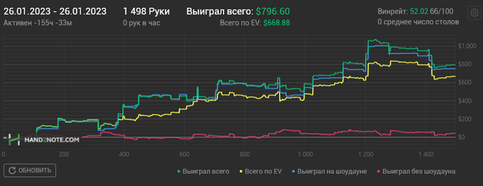 Немного ситуацию подправила победа в ежедневном ноке за 55$ (турниры не играю, но в течение недели было настолько пустое лобби, что приходилось себя чем-то занимать):