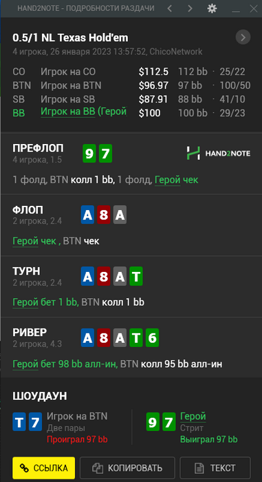 Если анализировать, что произошло за этот год, то ребята сделали из меня человека, который ничего не знал о кэш игре - неплохого регуляра. Я купил себе компьютер, мне выделили депозит в 500$ и я пошел покорять нл25. На сегодняшний день, это размер шота на верхнем лимите.