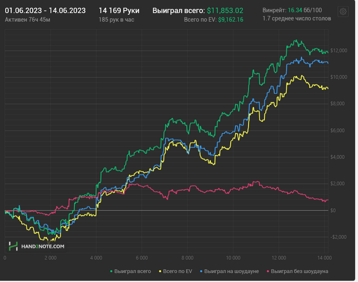 Июнь для меня также важен по той причине, что именно почти ровно год назад меня приняли в бэкинг школу FortunaTeam (огромное спасибо за это https://www.gipsyteam.ru/profile/pasha_shalnaya и https://www.gipsyteam.ru/profile/mdma13, а также всем ребятам, которые играли, разбирали раздачи, сидели в солверах и росли по лимитам вместе со мной. Радость за результаты других давала уверенность в том, что и у меня может все получится).