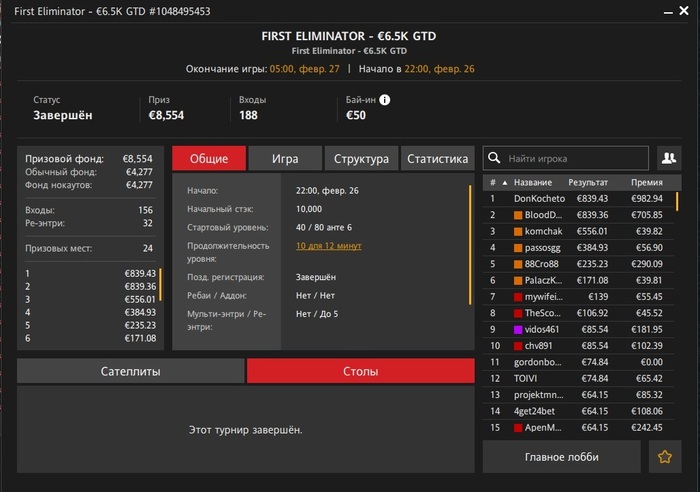 Результатов особых нет, мейк снова потихоньку растёт (уже 1к). Пытался понять почему так. Почему до фонда график шёл вверх, а сейчас зигзагами? Не могу закрепиться и расти. До фонда моя сессия начиналась так: я регаюсь в 12 хороших для себя турниров (не более) и начинаю играть. Если вылетаю - гружу ещё, чтобы общее число туриков было не более 12 штук. Но мне приходилось ждать пока все турики откроются (а это может быть и час и два). Сейчас я гружу 24-27 туриков сразу (Первый например в 19:00, а последний начнётся в 00:30 например). И играю и больше никуда не регаюсь. Возможно проблема в этом (по крайней мере на данный момент для моего уровня). Поэтому принимаю волевое решение грузить не более 12 туриков сразу и потом только догружать остальное. Будет не просто (ибо скучно), но надо себя перебороть и поиграть так 1-2 месяца, чтобы прочувствовать эффект. Может быть это и не правильно. Может меня просто диспа сейчас качает. Посмотрим.