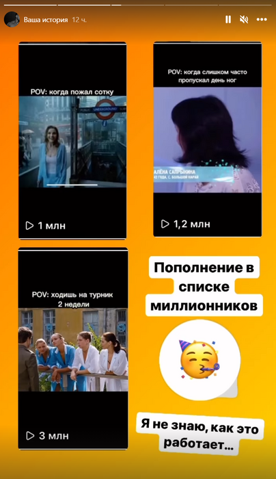 Видосик с бабками пока 900к просмотров. Чуть не дотягивает до ляма. Но вообще, забавно, что мне в личку пишут многие старые знакомые, с которыми не общался 5-10 лет. Мол, "Саня, это ты? В ленте высветилось, показалось знакомое лицо."