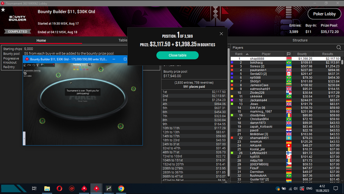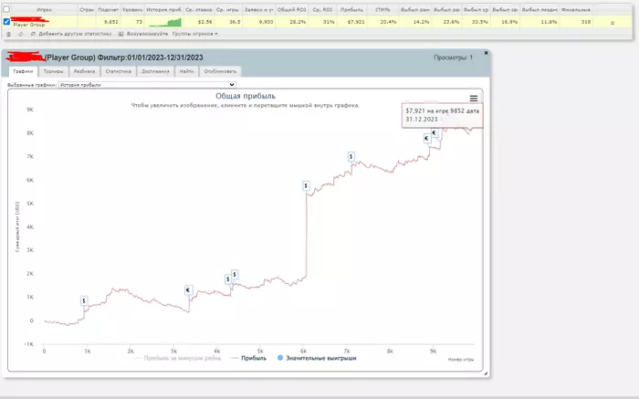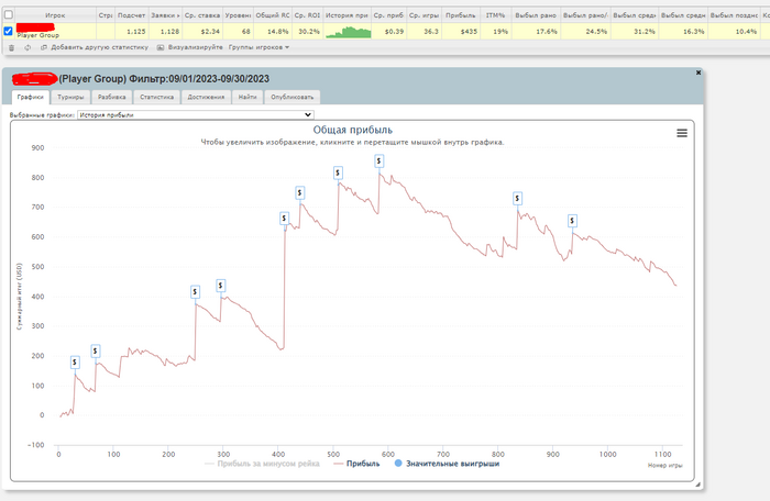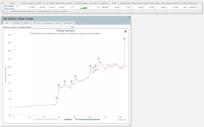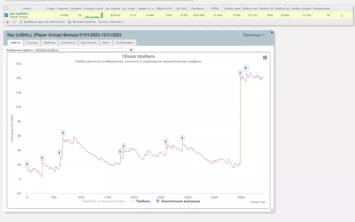 Накатал я 4.5к турниров с 20% РОИ на аби 15. Знаю мог и лучше, но затяжной стрик почти на всю дистанцию тоже немного давил.