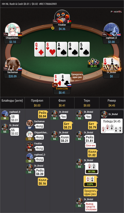 Всем привет кто заглядывает в мой дневник, 2-го сыграл мало, 3-го началось с дикого залива. Главная моя ошибка это после пары куллеров или переездов превращаюсь в обезьяну и начинаю кататься лицом по клавиатуре, причем исчезает кнопка фолд