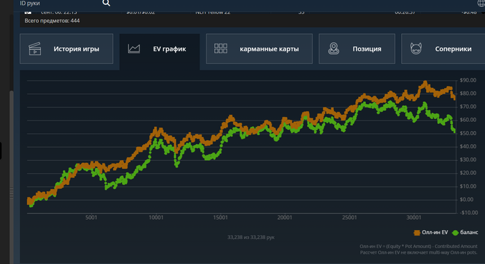 Minefielded, честно особо не работаю над игрой, иногда сМотрю разборы. Есть пару ликов, это пропиздеть 2 барная и не доехав поставить ривер а по факту смысла нет, в итоге пишешь нотс, что фишара. Но как итог они исчезают Через день, два. Вообще игра под фишей самая плюсовая. Есть нюансы с наблюдениями за типа регами, часть из них легко обыгрывать если пишешь нотсы. Много в ставках паляться очень, например после 3 бета 1/3 ставит если есть намек на дро, чек совсем не попал и фолить на маленькую, попал 2/3 или Овер пара. Пока пару таких нашёл(они как открытая книга для чтения) главное не тупить. А прям упереться в разбор смысла не вижу. Хотя иногда подумываю разобрать типа регов этого лимита, но тоже лень так как на 150$ планировал пробывать лимит выше. Сейчас пока опять с начала с той же точки стартую.