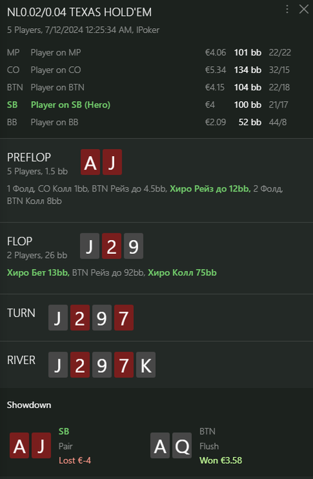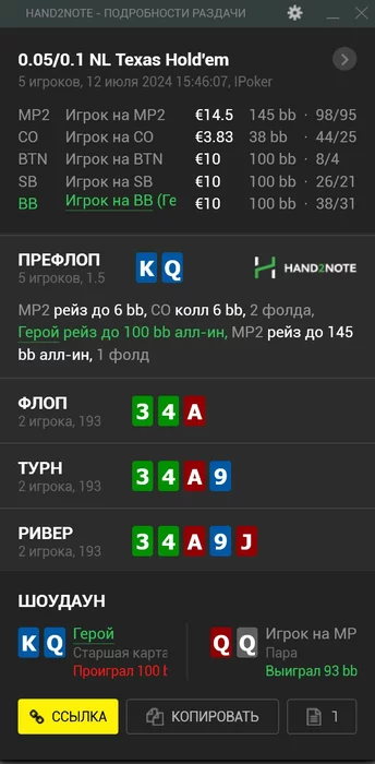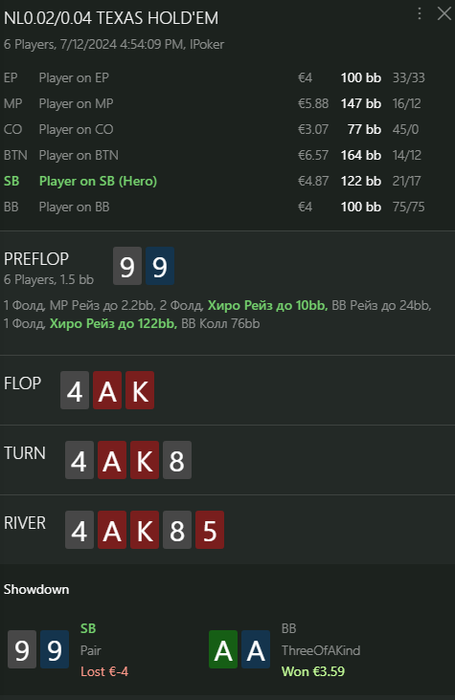 _SherLock_, Хорошо буду знать, просто карманки в этом случае не будут отличаться от того же самого КД по эквити, если они будут низкие. а так был хороший шанс еще и блокеры ему словить, но словил блокеры он мне