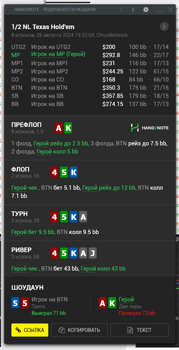 Strelets @ 11.12.24Играл в фонде в группе у Андрея. Работа Андрея с нами - все именно так как он описал! Всегда на связи! Ни один вопрос ни одна раздача не остались без его внимания. Рекомендации всегда четкие, лаконичные и по делу! Спасибо Андрей большое за твою работу!!!