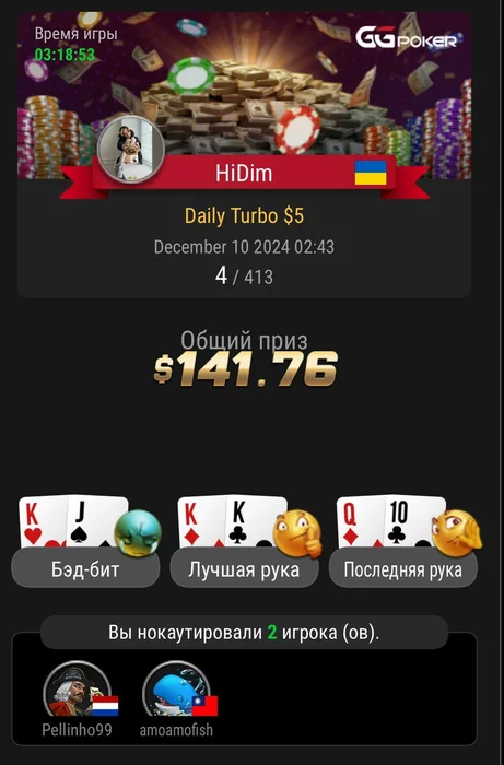• GG! Я закончил. Больше не будет депозитов. На этом покерная авантюра подошла к концу.