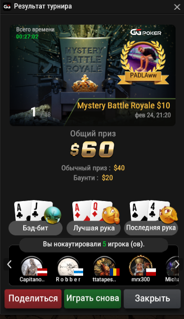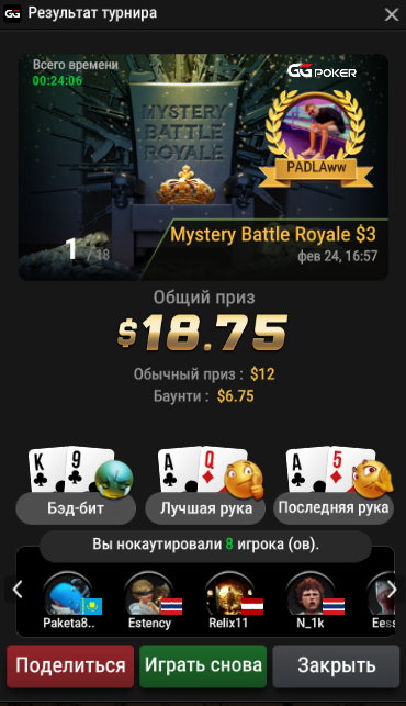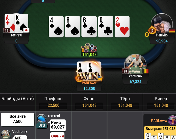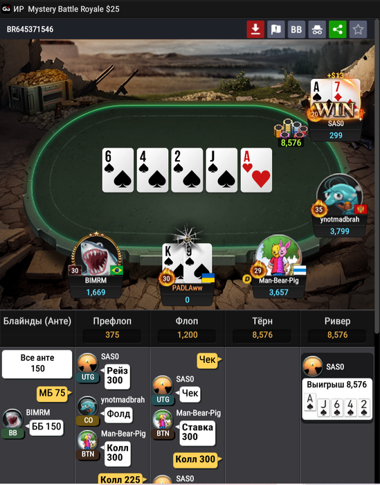 Я вот что понял. А ведь раньше. После подобных раздач. Вот именно после таких как сегодня. 1я - эта которая выше, на предфиналке. И 2я - вот только что вылетеле: 20 стартовых, чел с 96s не рефлексируя 🤣🤣🤣