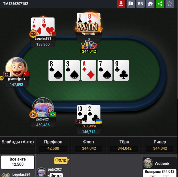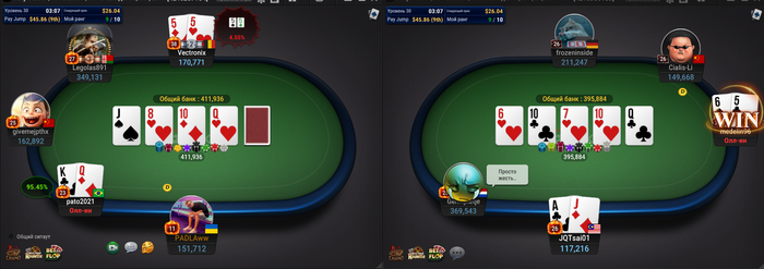 Ок. Ладно. Вчера челы колировали +- понятно для меня. Сегодня же чел просто с KJо. Сидел-сидел в конце все же нажал - выиграл. Молодец!  Диспа точно отдаст? 😅😅